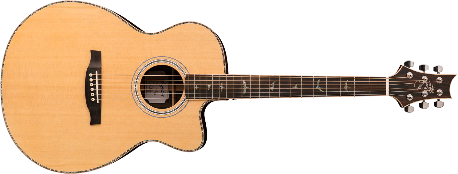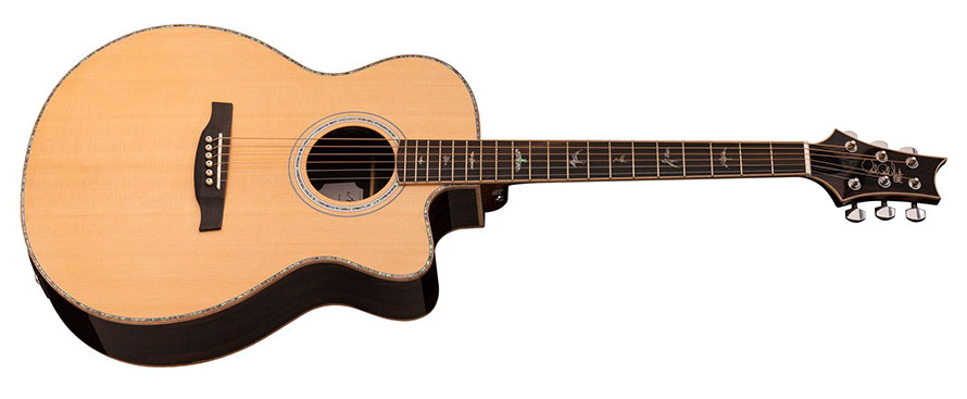 Outras características premium, incluem a escala e a ponte em ébano, nut e rastilho em osso, bem como a clássica marcação da escala em abalone "birds" da marca PRS.