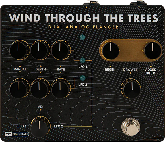 O pedal PRS Wind Through the Trees dual flanger, é um pedal analógico com dois osciladores, com controles individuais e controle de "Mix" entre os dois osciladores. Isso permite que você tenha infinitas opões de timbres e texturas. Possuí ainda controles de regeneração global, adição de agudos e controle "mix" entre o sinal limpo da guitarra e o efeito do pedal. Resumindo, Wind Through the Trees oferece horas de pura diversão!